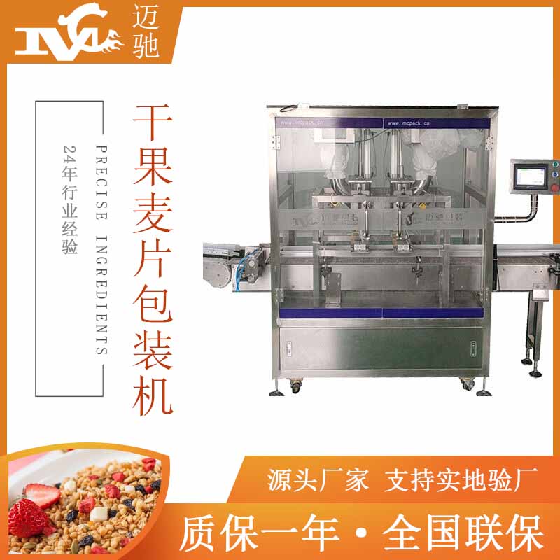 迈驰拥有完善的研发、生产、售后团队,可包装三合一混合麦片、坚果麦片、黑麦片、奇亚籽谷物麦片、麦果脆、谷物麦片、酸奶麦片、水果麦片、儿童燕麦片、牛奶麦片、纯麦片、即食麦片、燕麦饼干、燕麦粥、五红五黑燕麦片等物料包装。可选机型:前端设备、立式包装机、给袋式包装机、二次包装设备、灌装机、吨袋包装设备、真空包装机械、后端设备,重量检测机、金属检测机、自动贴标机、二维码追溯系统、自动装箱机、封箱打包一体机、自动码垛机器人,为燕麦片生产企业打造智能化包装流水线工厂。
